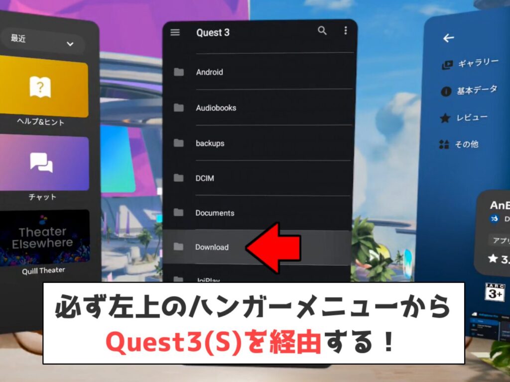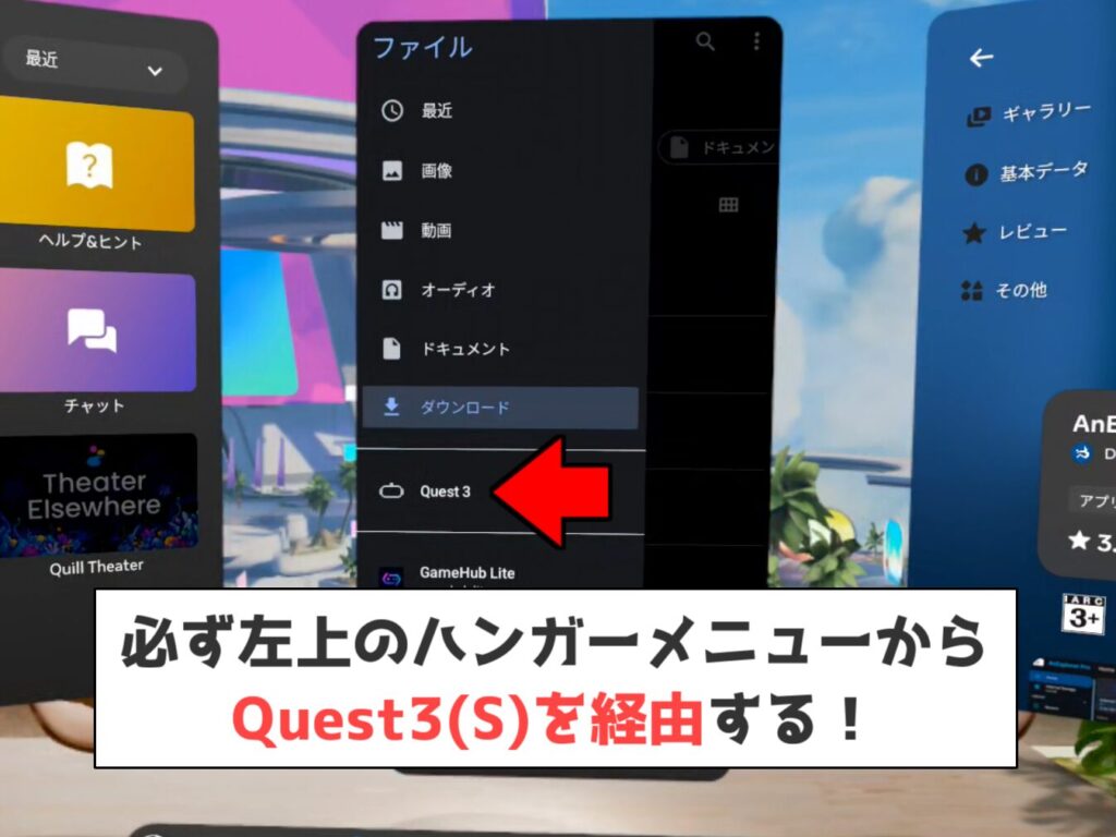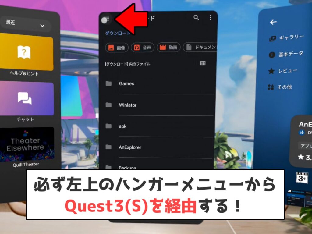※メタクエストにインストールする方法はコチラの動画を参照。