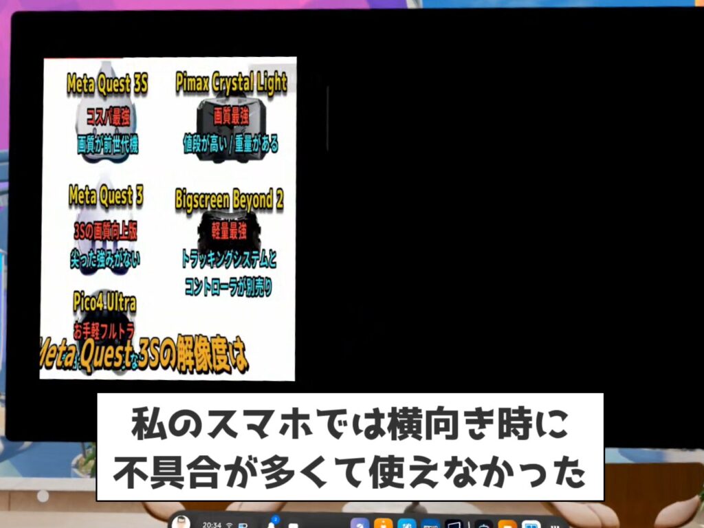 しかし単純に「メタクエストの中にスマホの画面を表示する方法」としては、これが一番簡単でしょう。