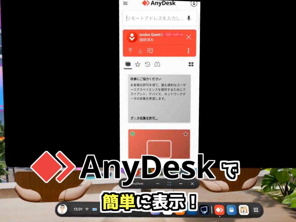 AnyDeskを使ってスマホ画面をメタクエストの中に表示する