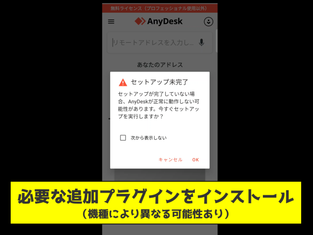 AnyDeskを起動すると、必要なセットアップの案内が表示されます。