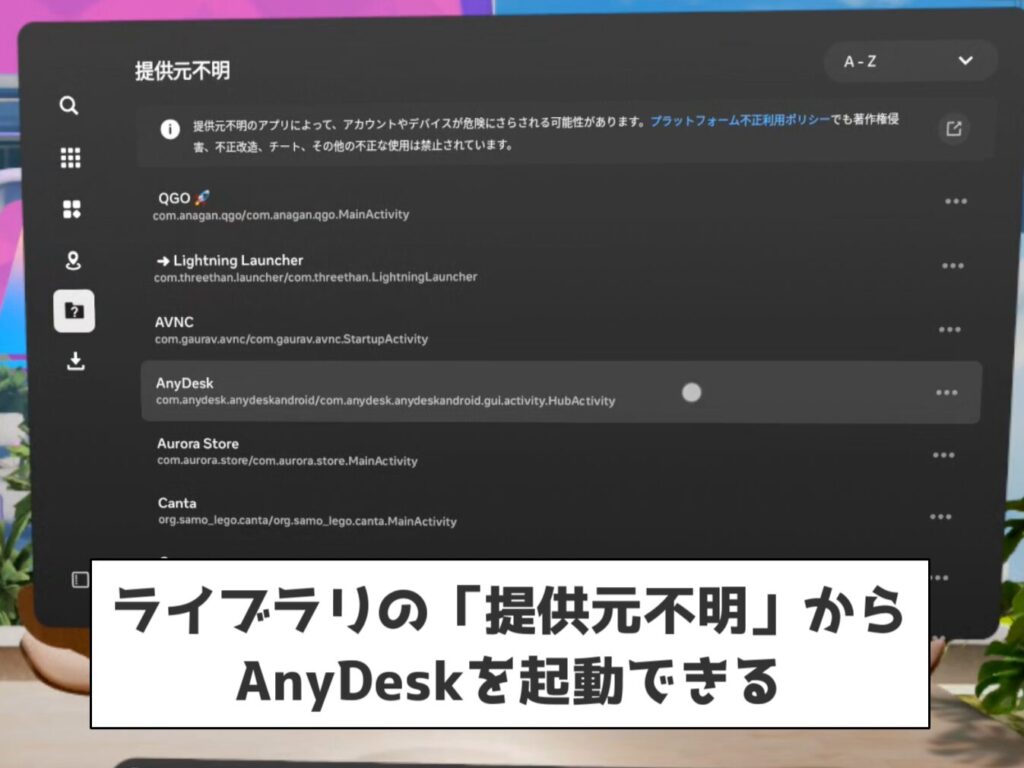 メタクエストにAnyDeskをインストール