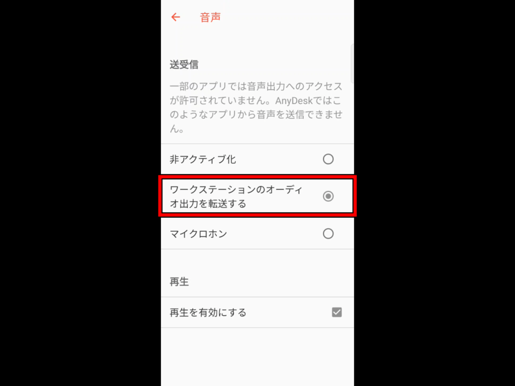 「音声転送の許可設定」はスマホ側のAnyDeskにて、以下の場所で変更できます。