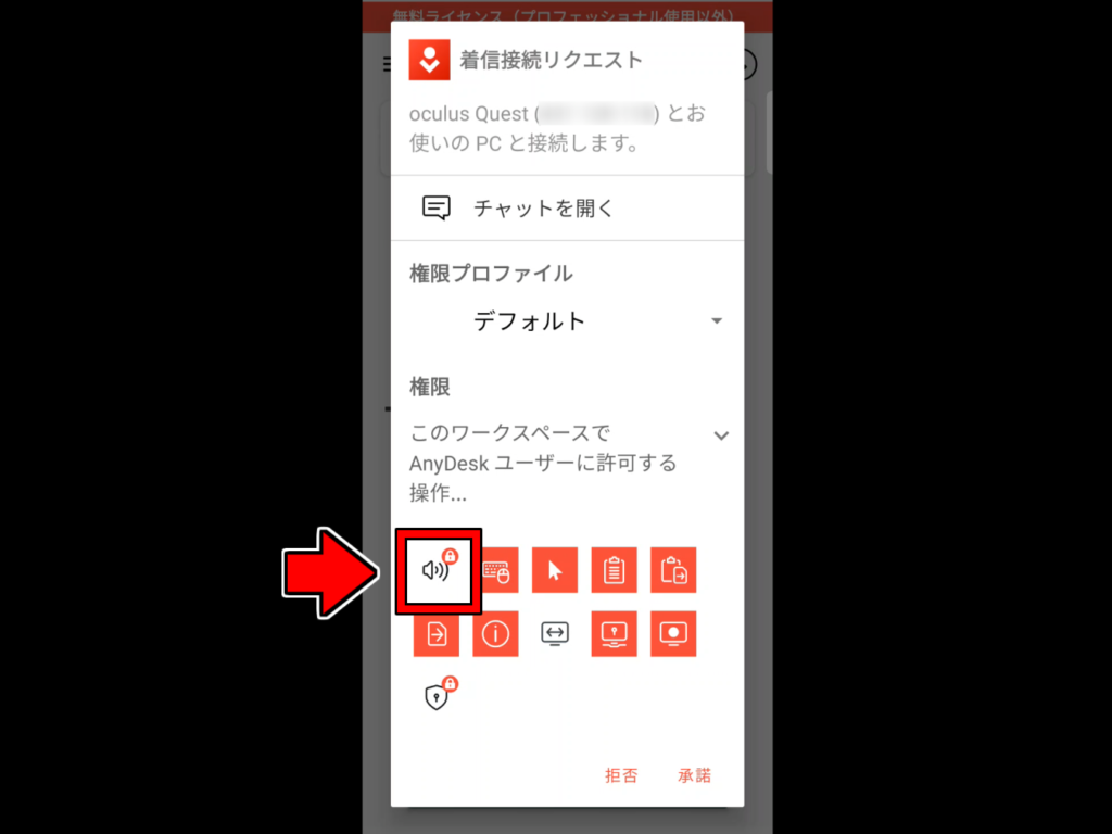 「音声権限の付与」は、権限を許可する際にスピーカーアイコンをタップすると付与できます。