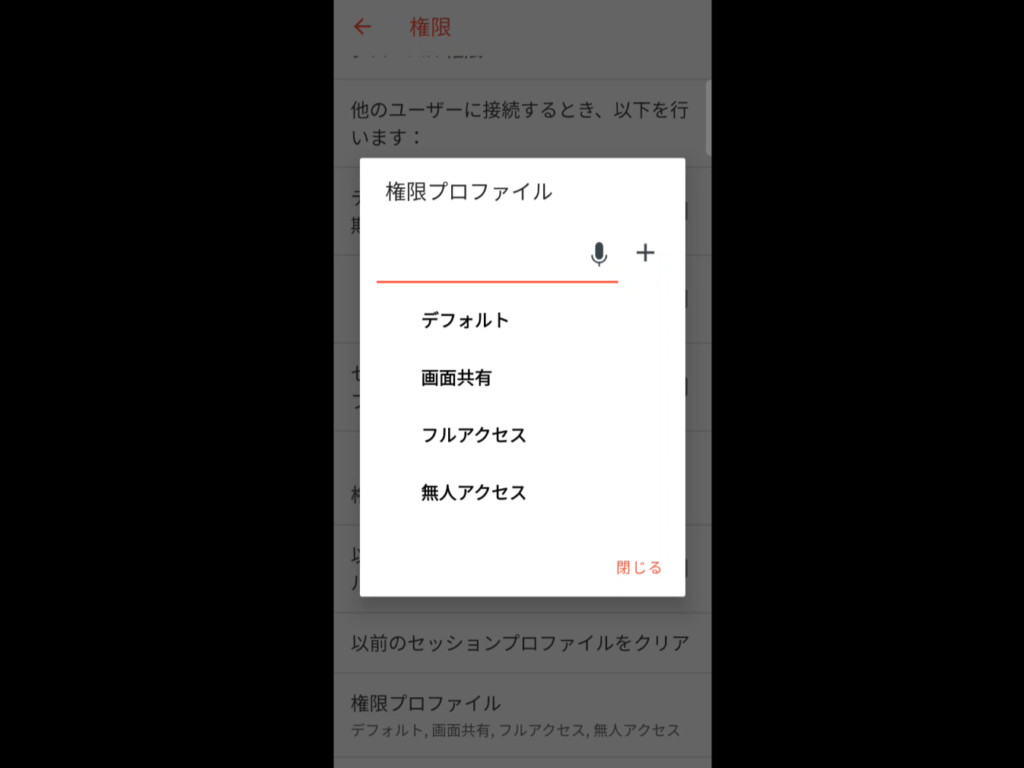 続いて権限プロファイル(どこまでの操作を許可するか?)の選択が表示されます。