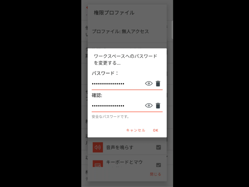 - パスワード(8文字以上)を入力して「OK」