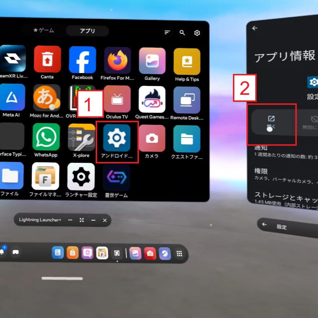 Lightning Launcherは、apkファイルからメタクエストにインストールする必要があります。