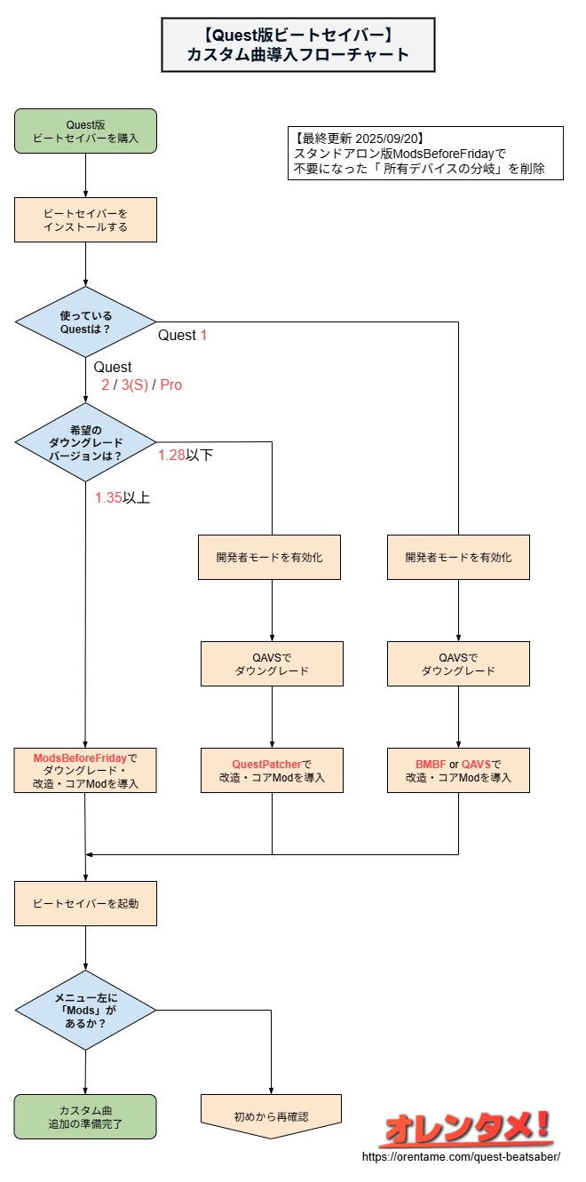 2025年9月20日時点のカスタム曲の導入手順をフローチャートにしました。