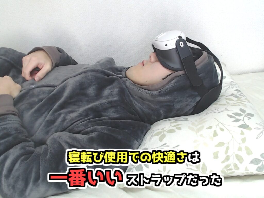 ゴムバンドなので、仰向きだとどうしてもメタクエスト本体の重量を感じるところはあります。