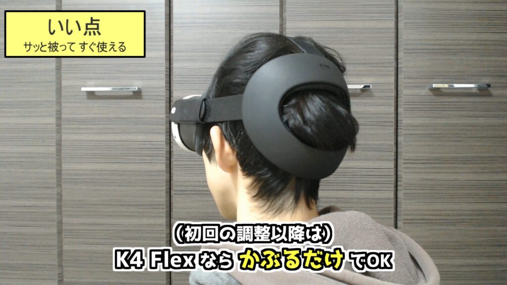 多くのヘッドストラップがダイヤル式で大きさを調整するようになっているのに対し、K4 Flexは標準ストラップと同じゴムバンド式になっています。