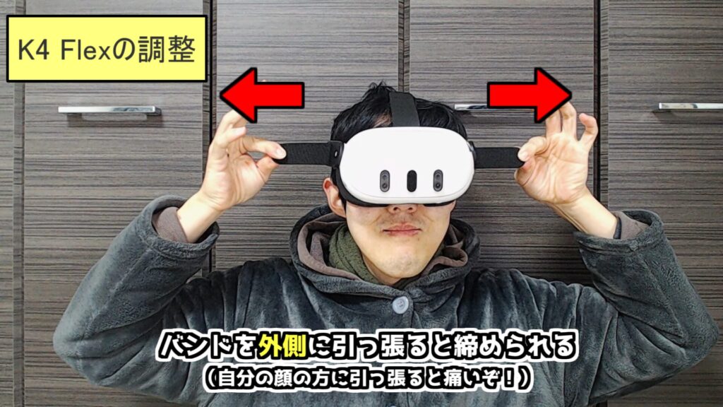 メタクエスト本体が動かないよう固定するには、それなりの締め付けが必要です。