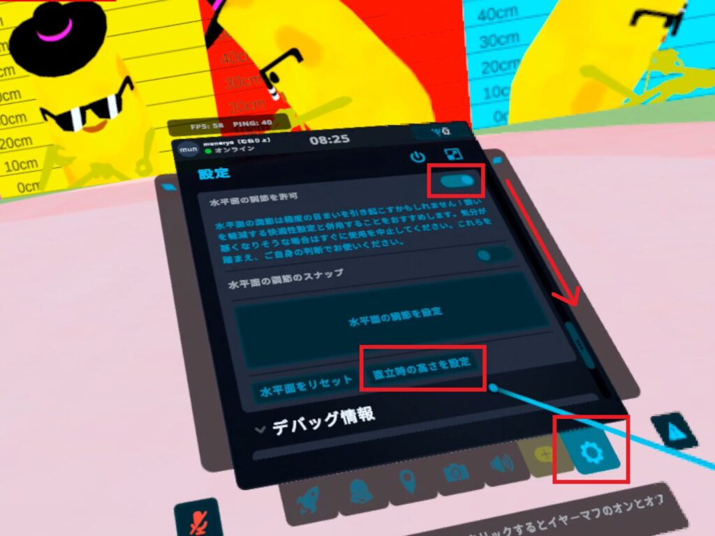 1つ目方法は、VRChatの「高さ設定ボタン」を使います。