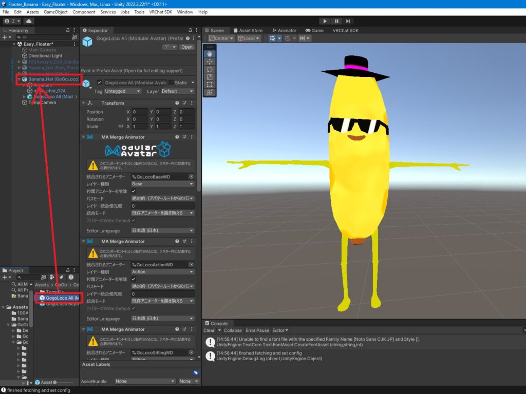 アバターにGoGo Locoをドラッグアンドドロップで追加
