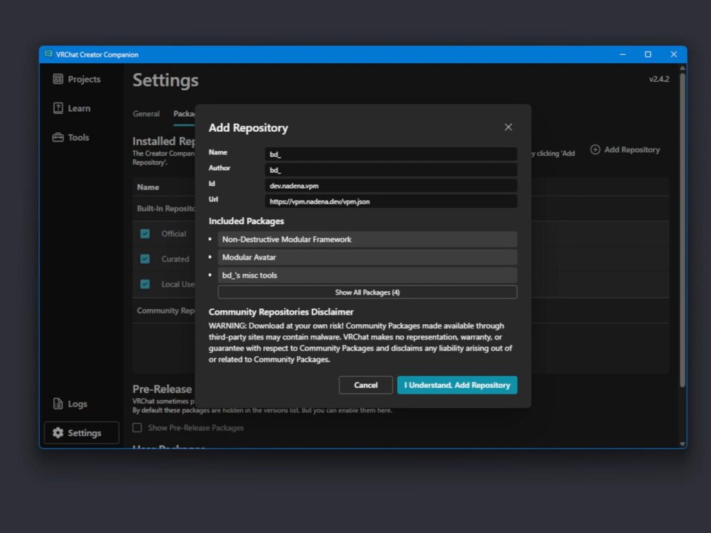 GoGo LocoはModular Avatarに対応しているため、ドラッグ&ドロップでアバターにできます。
