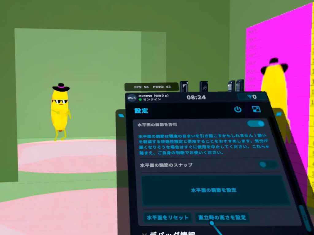 そこからリアルで立ち上がると、ボタンを押した時と立ち上がった時の高さの差の分、アバターの足が地面から離れ宙に浮くというわけです。